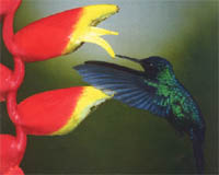 Ilustra o professor titular de fisiologia do Instituto de Biociências da Universidade de São Paulo, José Eduardo Bicudo. Até a digestão colabora. É a ave que mais assimila o que come: aproveita quase todo o açúcar do néctar e digere os insetos em menos de dez minutos. Não dá para falar dessa ave sem lembrar das flores, em especial as que desenvolveram um formato alongado em função dos próprios beija-flores (veja quadro Flores Atraentes). O néctar praticamente só é acessível aos bicos compridos deles e tem uma concentração de açúcar boa para eles ( 15 a 25%), mas fraca para as abelhas (buscam de 70 a 80%). Suas cores são as que eles melhor percebem. "Preferem as vermelhas, amarelas, alaranjadas, brancas e azuis, nessa ordem", ensina Christian. Quase nunca são perfumadas, já que o olfato deles é fraco. Para evitar perfuração por predadores de bico curto que querem "roubar" o néctar, têm base reforçada e pétalas espessas. Curiosamente, entre esses predadores estão algumas espécies de beija-flores de bico curto.